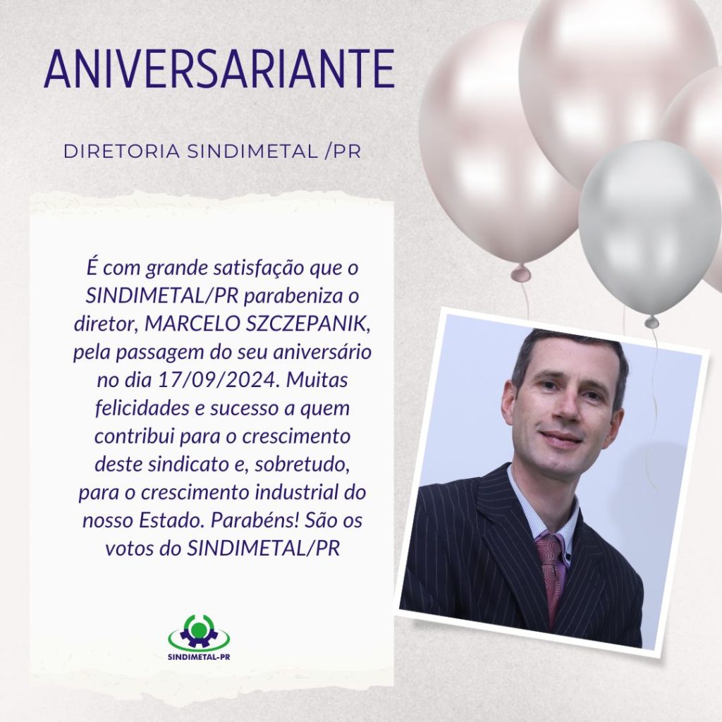 O SINDIMETAL/PR parabeniza o industrial e diretor do SINDIMETAL/PR, Sr. MARCELO SZCZEPANIK pela passagem do seu aniversário!