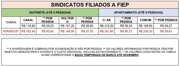 O SINDIMETAL/PR divulga a redução de 20% nos valores da hospedagem para a baixa temporada 2023, na Sede da Associação ABESSFI Guaratuba.
