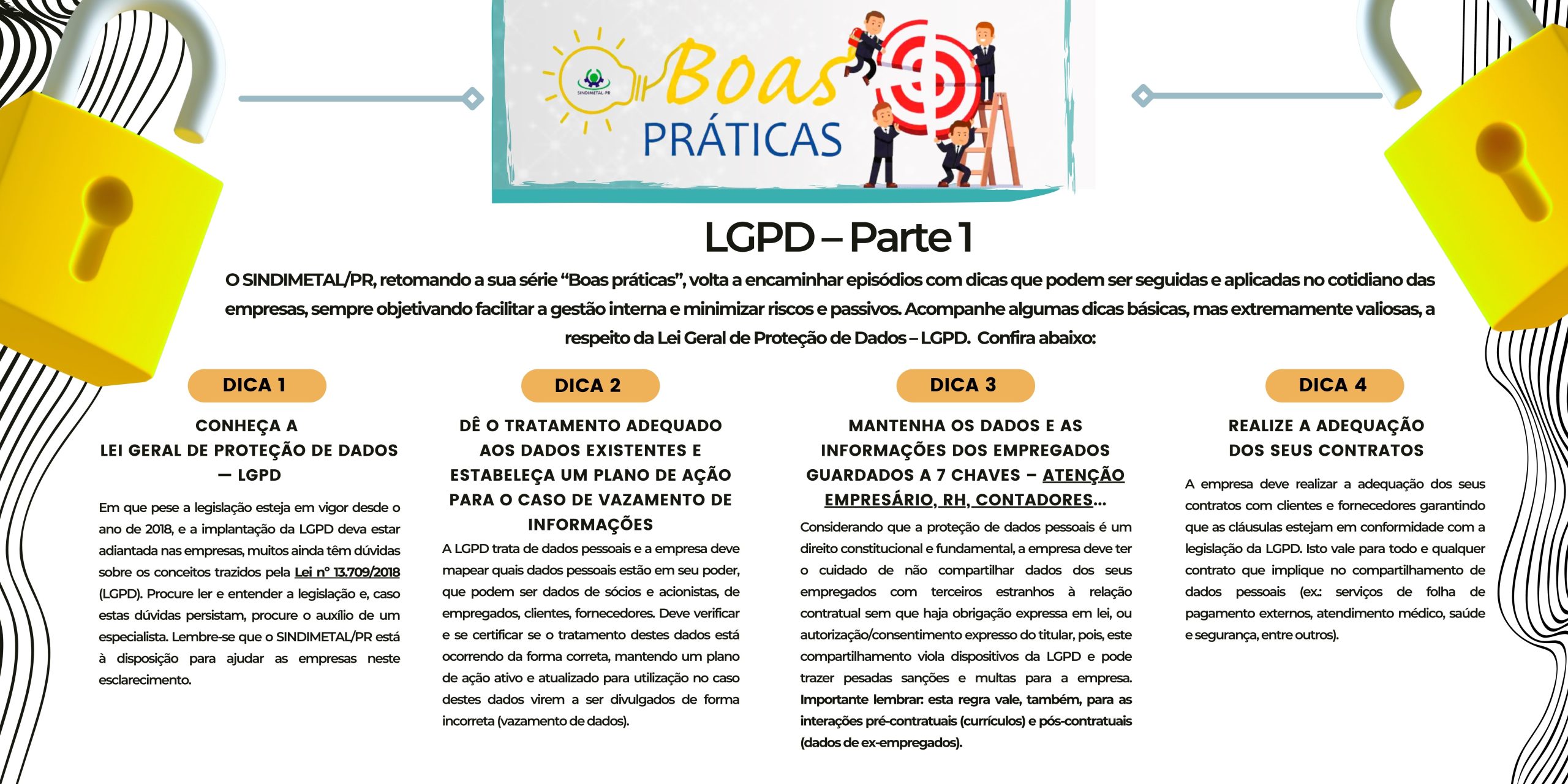 O informe BOAS PRÁTICAS SINDIMETAL/PR está disponível também nas plataformas do SINDIMETAL/PR ( FACEBOOK, INSTAGRAM E LINKEDIN ).