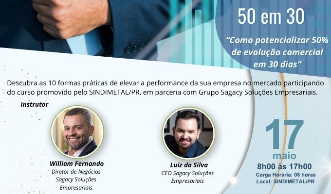 Notícias LEMBRETE| CURSO: “50 EM 30 – COMO POTENCIALIZAR 50% DE EVOLUÇÃO COMERCIAL EM 30 DIAS” Veja mais 07/05/2024