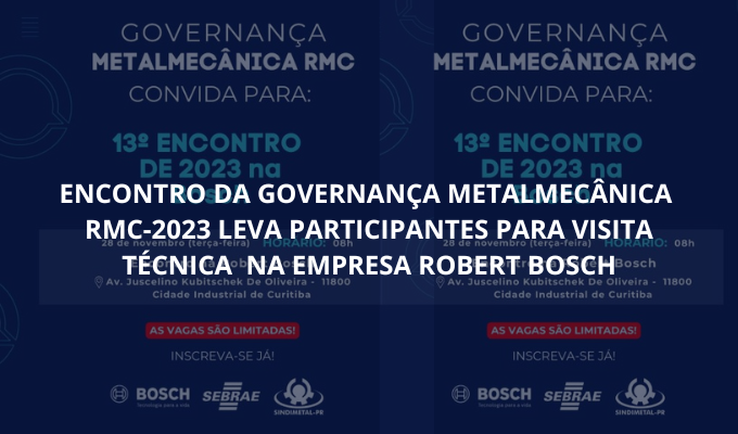Notícias CONVITE| 13º ENCONTRO DA GOVERNANÇA METALMECÂNICA RMC-2023 LEVA PARTICIPANTES PARA VISITA TÉCNICA NA EMPRESA ROBERT BOSCH Veja mais 23/11/2023