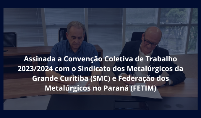 Convenções Coletivas Metalúrgicos de Curitiba ASSINADA A CONVENÇÃO COLETIVA DE TRABALHO 2023/2024 COM O SINDICATO DOS METALÚRGICOS DA GRANDE CURITIBA (SMC) E FEDERAÇÃO DOS METALÚRGICOS NO PARANÁ (FETIM) Veja mais 28/11/2023