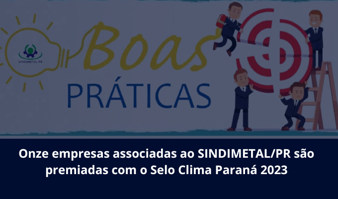 Notícias BOAS PRÁTICAS SINDIMETAL/PR: ONZE EMPRESAS ASSOCIADAS AO SINDIMETAL/PR SÃO PREMIADAS COM O SELO CLIMA PARANÁ 2023 Veja mais 17/11/2023