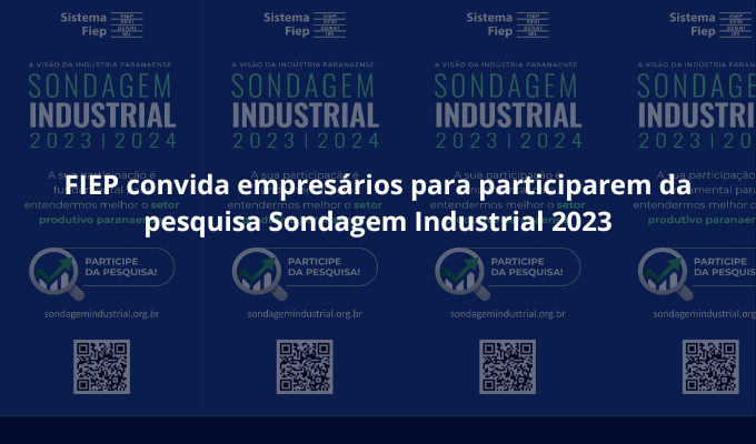 Notícias FIEP CONVIDA EMPRESÁRIOS PARA PARTICIPAREM DA PESQUISA SONDAGEM INDUSTRIAL 2023 Veja mais 25/10/2023