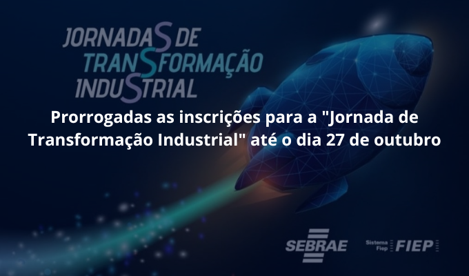 Notícias PRORROGADAS AS INSCRIÇÕES PARA A “JORNADA DE TRANSFORMAÇÃO INDUSTRIAL” ATÉ O DIA 27 DE OUTUBRO Veja mais 20/10/2023