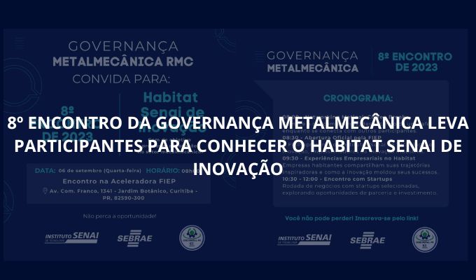 Notícias CONVITE: 8º ENCONTRO DA GOVERNANÇA METALMECÂNICA LEVA PARTICIPANTES PARA CONHECER O HABITAT SENAI DE INOVAÇÃO Veja mais 22/08/2023