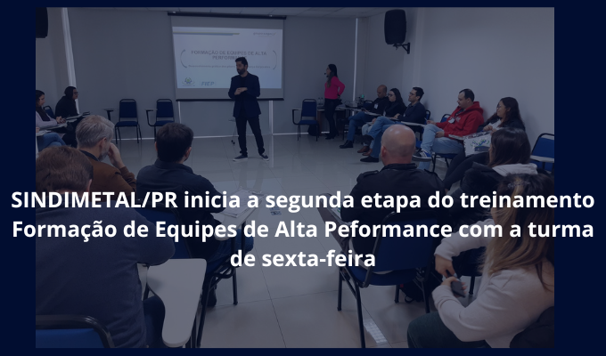 Notícias TREINAMENTO FORMAÇÃO DE EQUIPES DE ALTA PERFORMANCE TEM CONTINUIDADE NESTE SÁBADO NO SINDIMETAL/PR Veja mais 26/08/2023