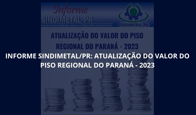 Notícias INFORME SINDIMETAL/PR: ATUALIZAÇÃO DO VALOR DO PISO REGIONAL DO PARANÁ – 2023 Veja mais 08/08/2023