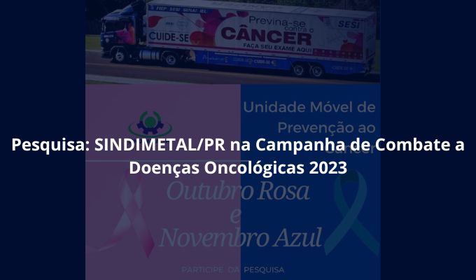 Notícias PESQUISA: SINDIMETAL/PR NA CAMPANHA DE COMBATE A DOENÇAS ONCOLÓGICAS 2023 Veja mais 10/07/2023