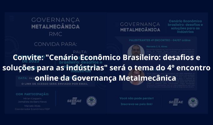 Notícias CONVITE – “CENÁRIO ECONÔMICO BRASILEIRO: DESAFIOS E SOLUÇÕES PARA AS INDÚSTRIAS” SERÁ O TEMA DO 4º ENCONTRO ONLINE DA GOVERNANÇA METALMECÂNICA” Veja mais 29/06/2023