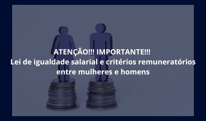 Notícias ATENÇÃO!!! IMPORTANTE!!! LEI DE IGUALDADE SALARIAL E CRITÉRIOS REMUNERATÓRIOS ENTRE MULHERES E HOMENS Veja mais 05/07/2023