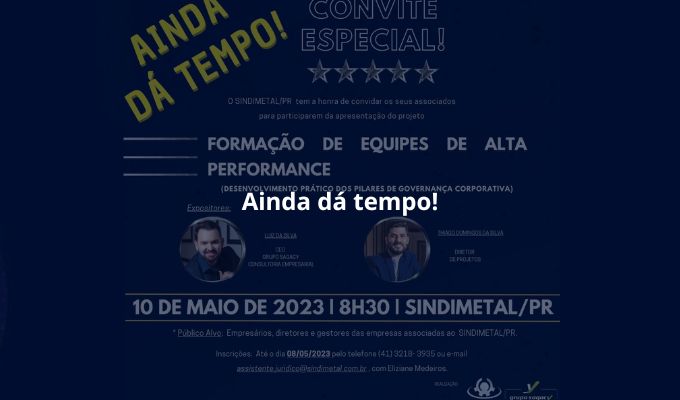 Notícias QUER MELHORAR O DESEMPENHO DA SUA EMPRESA CONTANDO COM UMA EQUIPE DE ALTA PERFORMANCE? Veja mais 08/05/2023