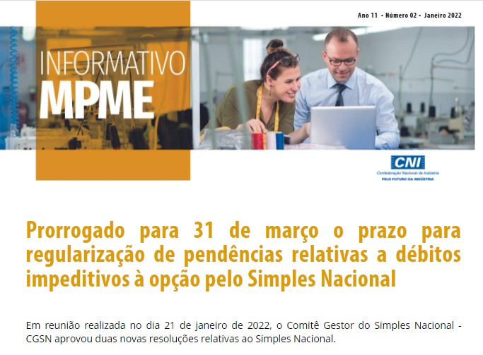 O SINDIMETAL/PR divulga o Informativo MPME nº 02, elaborado pela CNI. O Informativo MPME traz as principais notícias da semana sobre Micro, Pequenas e Médias Empresas.