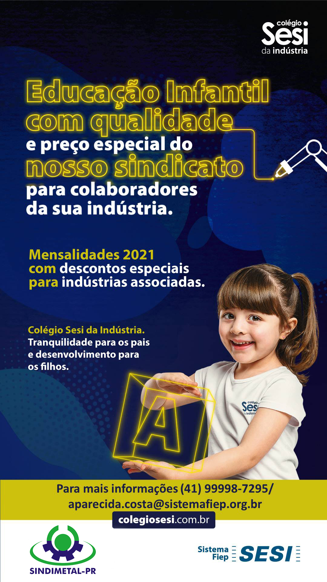 O SINDIMETAL/PR informa aos seus associados que o Colégio Sesi da Indústria está com vagas disponíveis para Educação Infantil.