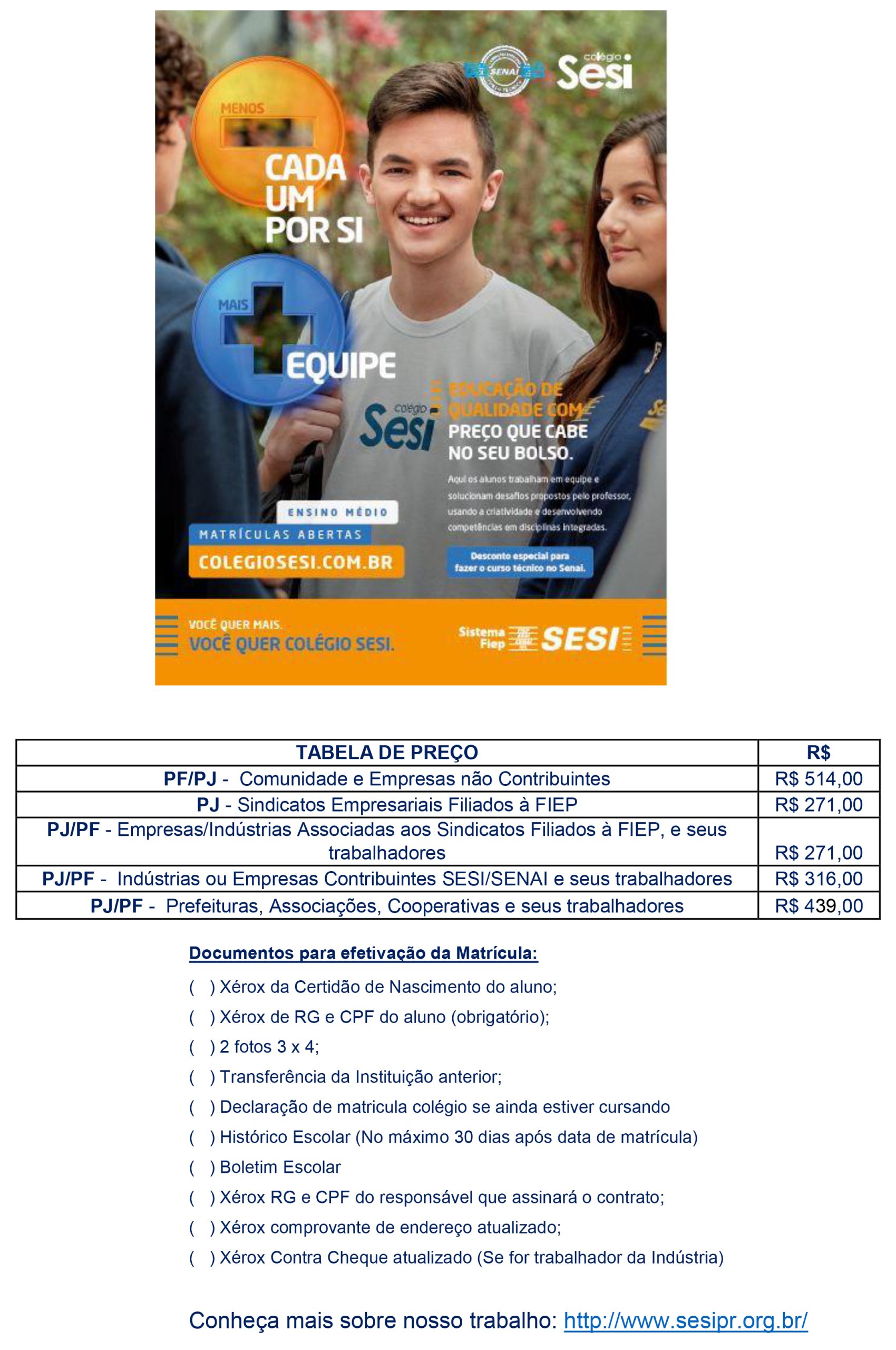 COLÉGIO SESI- MATRÍCULAS ABERTAS
