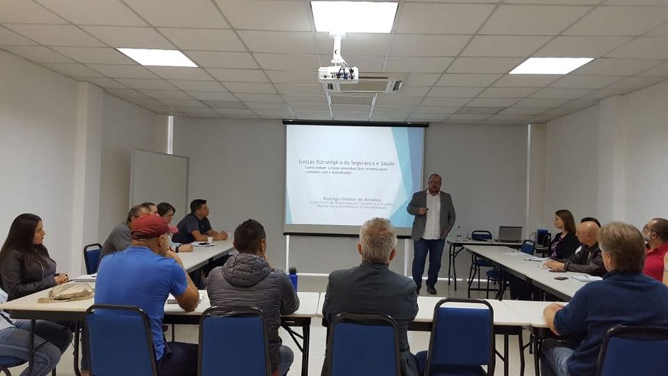 O convidado para abordar o tema foi o advogado e engenheiro de segurança do trabalho, Rodrigo Meister de Almeida. Em sua apresentação, Rodrigo discorreu sobre a gestão da segurança e saúde com foco na redução de custos por afastamentos e impostos previdenciários.