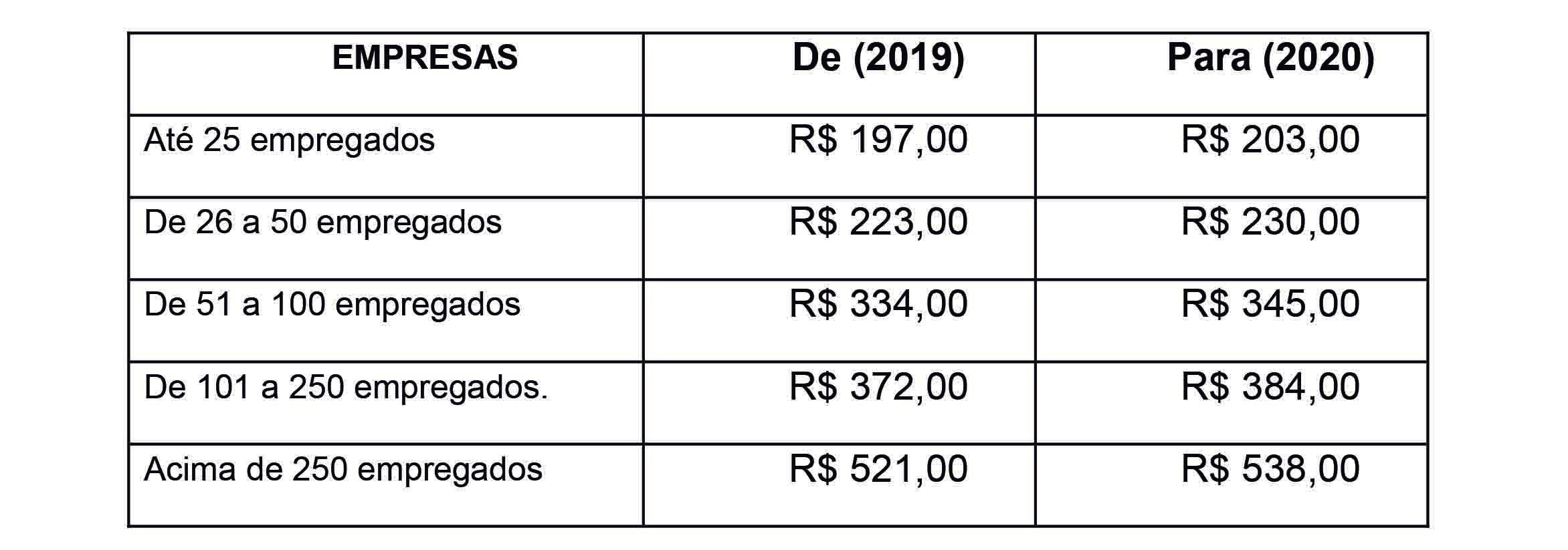 Os valores constantes da tabela acima foram aprovados na Assembleia Geral Ordinária (AGO) realizada no dia 08/11/2019 (Edital publicado no Jornal Tribuna do Paraná em 29/10/2019, pág. 18 – convocação: (CLIQUE AQUI)