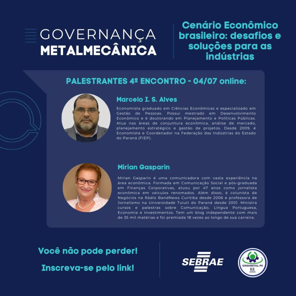 O SINDIMETAL/PR convida os seus associados para participarem do 4º Encontro da Governança Metalmecânica RMC-2023 que debaterá o tema “Cenário Econômico Brasileiro: Desafios e Soluções para as Indústrias”.