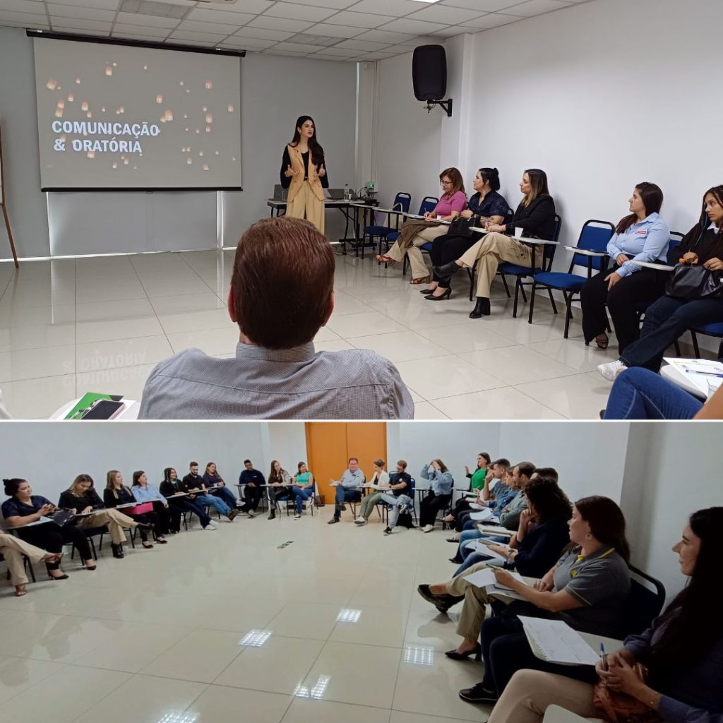 Ainda, os participantes realizaram uma atividade de storytelling, exercitando a prática de contar histórias para engajar e conectar o público, visando desenvolver suas habilidades narrativas. Além disso, também foi proposta uma dinâmica na qual os presentes elaboraram um pré-projeto de oratória voltado à venda de um produto (instituição) proporcionando, com isso, uma vivência prática sobre como desenvolver uma comunicação assertiva.