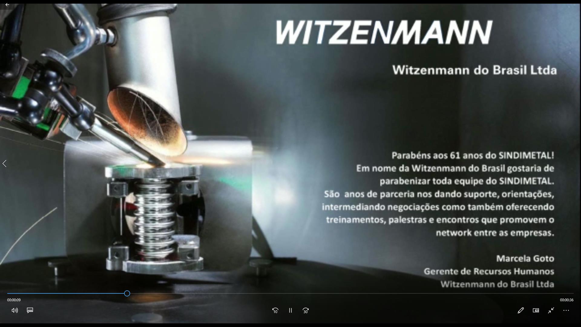 A Witzenmann do Brasil é nossa associada desde 2009. A empresa, representada pela Gerente de Recurso Humanos, Marcela Goto, também nos encaminhou mensagem de felicitações pelo 61 de atividades do SINDIMETAL/PR.