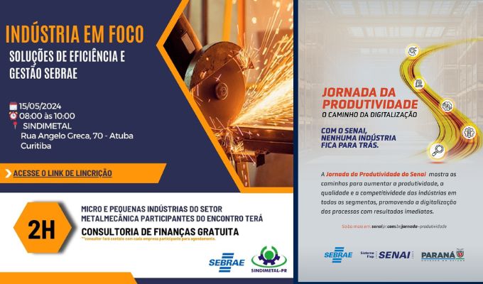 No dia 15 de maio, a partir das 8h, o tema a ser debatido será “Indústria em Foco: Soluções de Eficiência e Gestão Sebrae”. E, ainda, vale destacar que as micro e pequenas indústrias do setor metalmecânico que participarem das atividades receberão 2h de consultoria financeira gratuita.