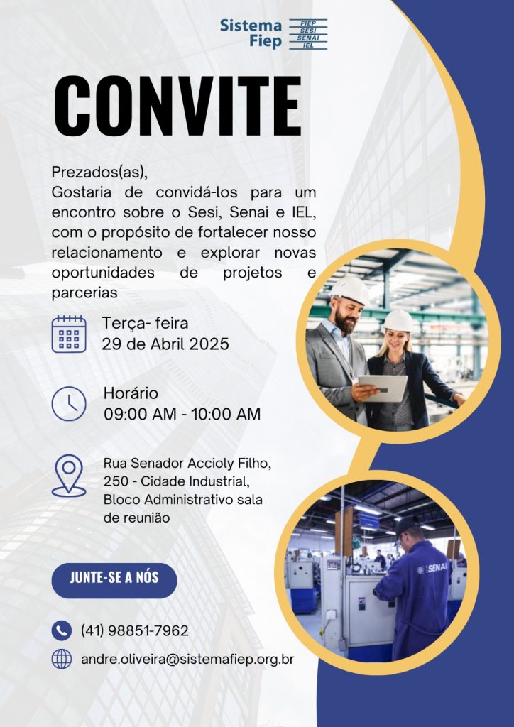 O SINDIMETAL-PR convida suas empresas associadas e filiadas para o Encontro SESI, SENAI e IEL.