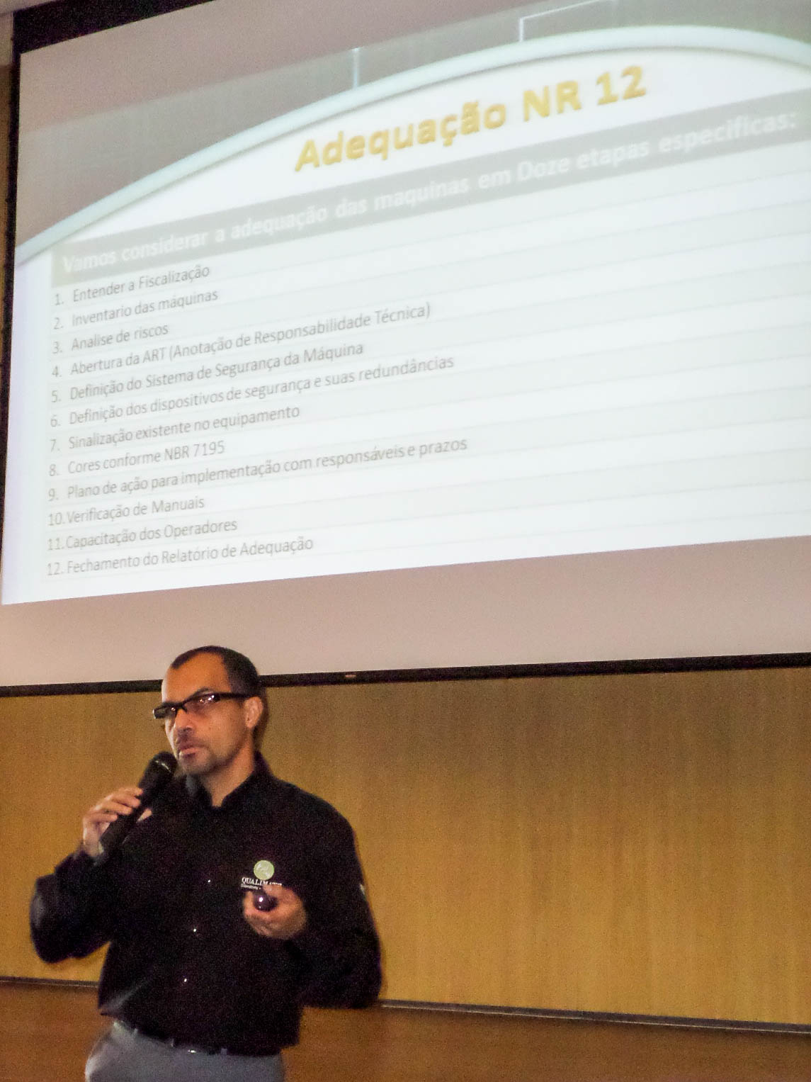 O evento teve por objetivo alertar os presentes quanto aos riscos do não cumprimento dos princípios fundamentais e medidas preventivas de segurança e higiene a serem adotadas em relação à instalação, operação, manutenção e outras atividades envolvendo máquinas e equipamentos, visando à prevenção de acidentes do trabalho. É disso que trata a NR12.