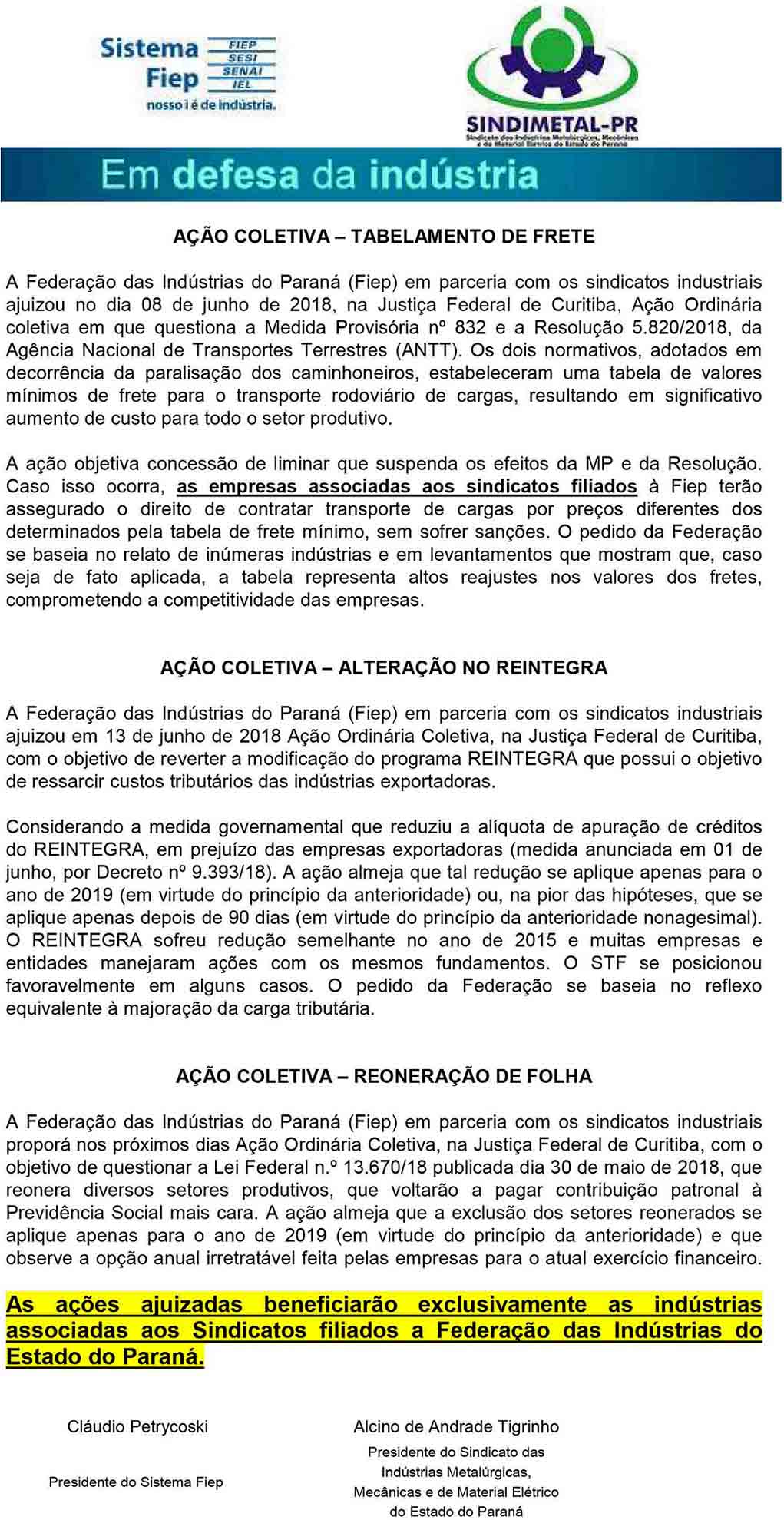 FIEP E SINDICATOS INGRESSAM COM AÇÕES COLETIVAS