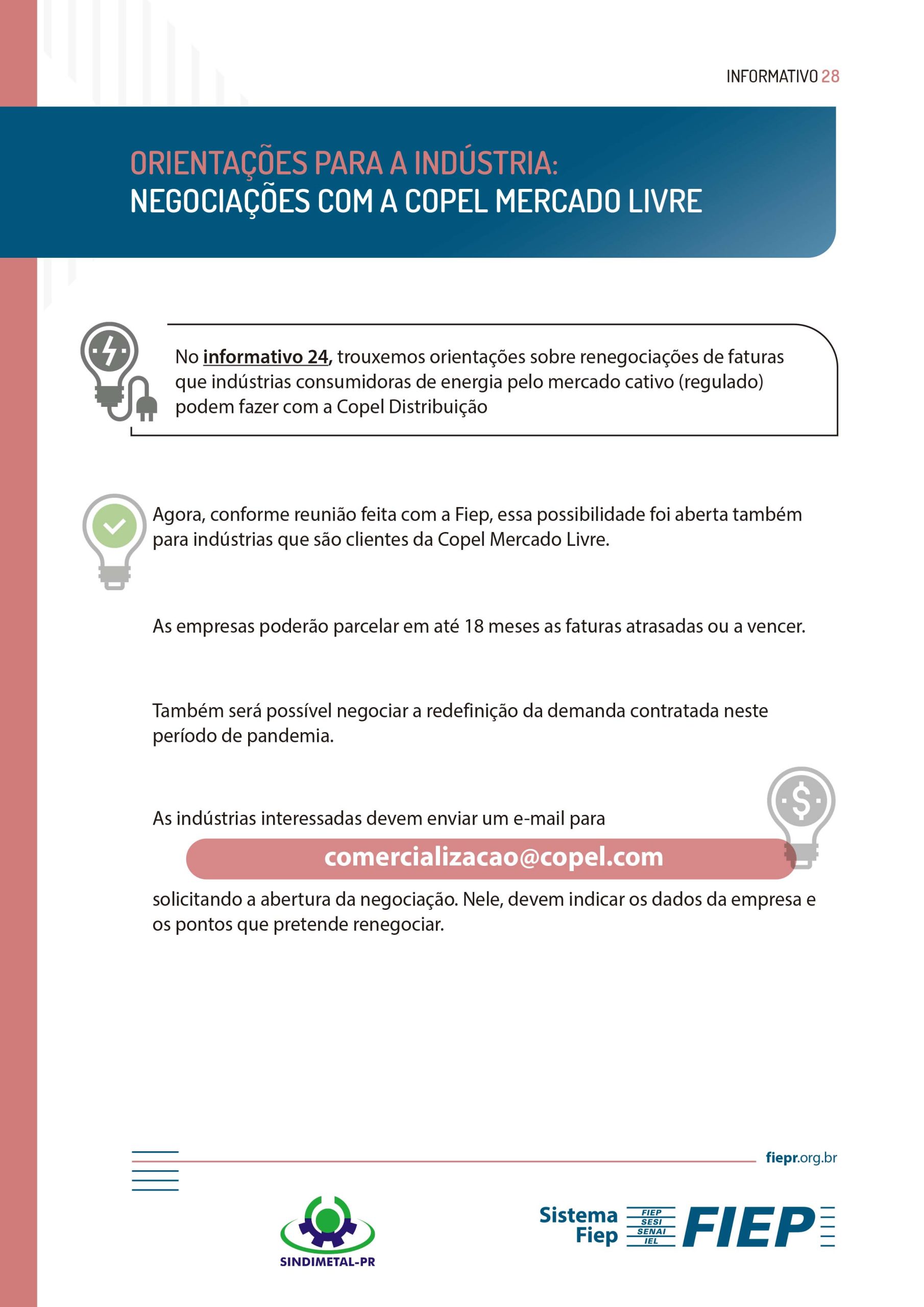 IMPORTANTE – ORIENTAÇÕES PARA A INDÚSTRIA: NEGOCIAÇÕES COPEL MERCADO LIVRE
