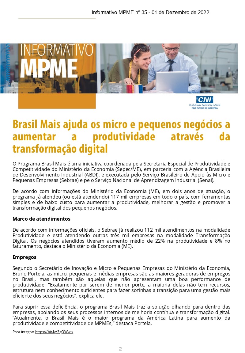 SINDIMETAL/PR divulga Informativo MPME, elaborado pela CNI que destaca o Programa Indústria Mais Produtiva.