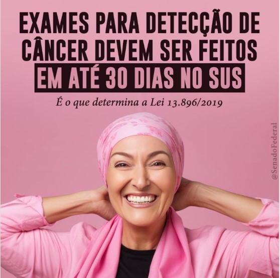 Pacientes do Sistema Único de Saúde (SUS) com suspeita de câncer têm direito à realização de exames no prazo máximo de 30 dias!