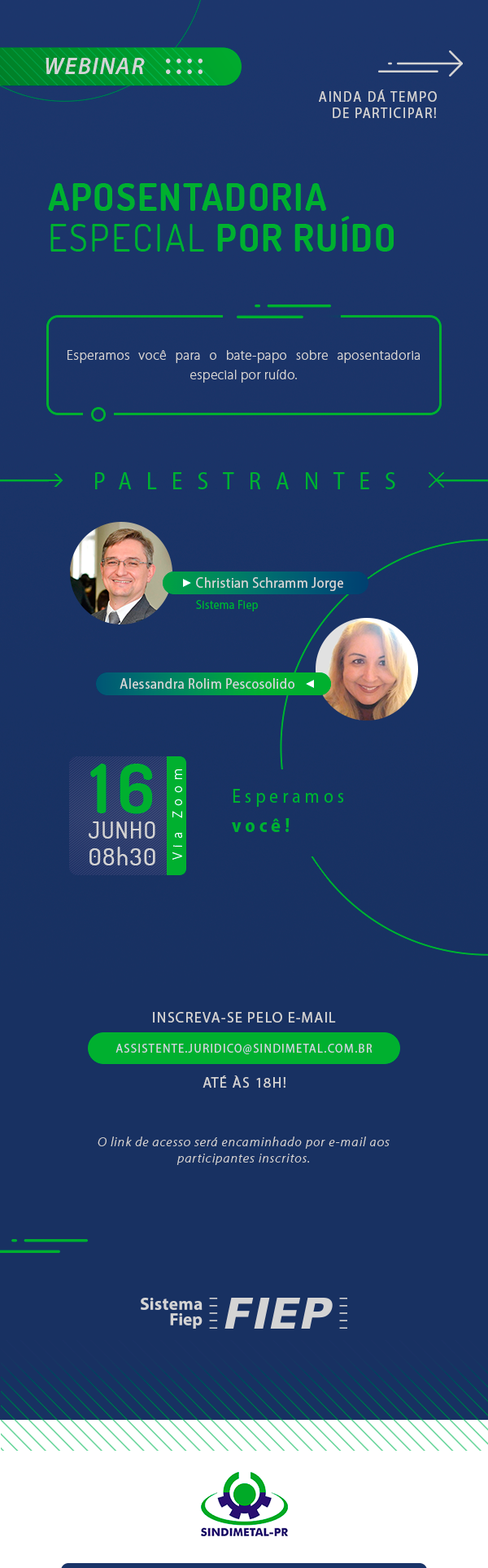 LEMBRETE: WEBINAR APOSENTADORIA ESPECIAL POR RUÍDO