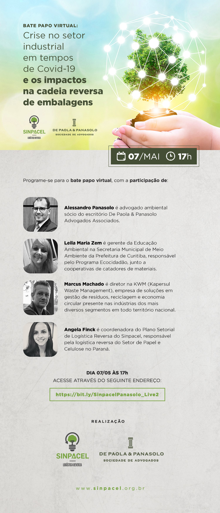 O SINDIMETAL/PR,  em parceria com o escritório De Paola & Panasolo Sociedade de Advogados, convida para a live a ser realizada amanhã, dia 07 de maio, às 17h, sobre o tema: “Crise no setor industrial em tempos de Covid-19 e os impactos na cadeia reversa de embalagens”. A live abordará questões que envolvem o cenário atual da logística reversa de embalagens.