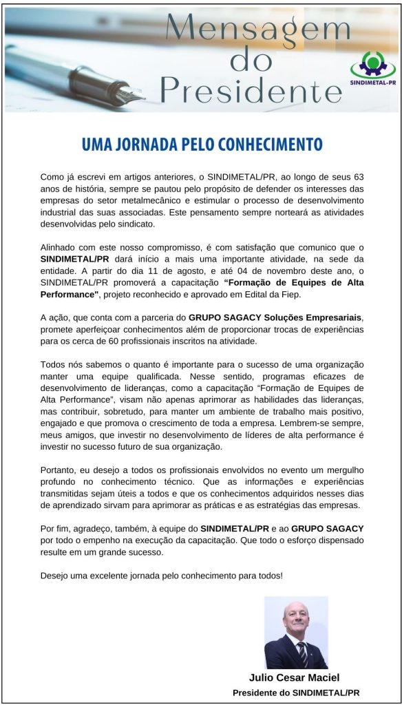 MENSAGEM DO PRESIDENTE: UMA JORNADA PELO CONHECIMENTO