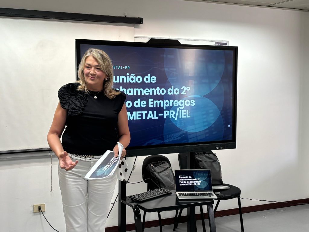Seguindo a sua apresentação, a superintendente também mencionou projeções extraídas do Observatório Nacional da Indústria do setor metalmecânico, que prevê a criação de 128,4 mil empregos até 2027, enquanto o setor de operação industrial deve gerar mais de 190 mil vagas. Ela enfatizou ainda que essa demanda torna essencial a integração do SINDIMETAL-PR e do IEL com a plataforma Emprega Indústria, visando facilitar contratações e fortalecer o setor.