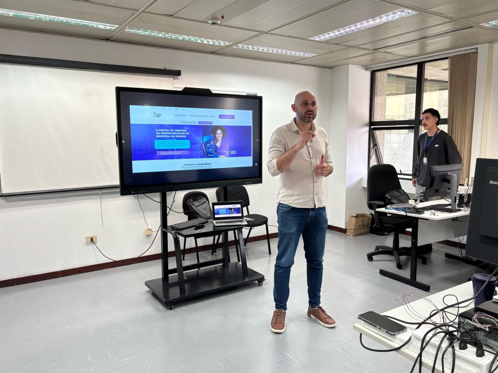 Em seguida, o coordenador do IEL, Jhonatan Rigueti mostrou na prática para as empresas presentes na reunião o funcionamento e o cadastro das empresas na plataforma Emprega Indústria, orientando aos presentes todo o processo desde a abertura de uma vaga até a localização do profissional.