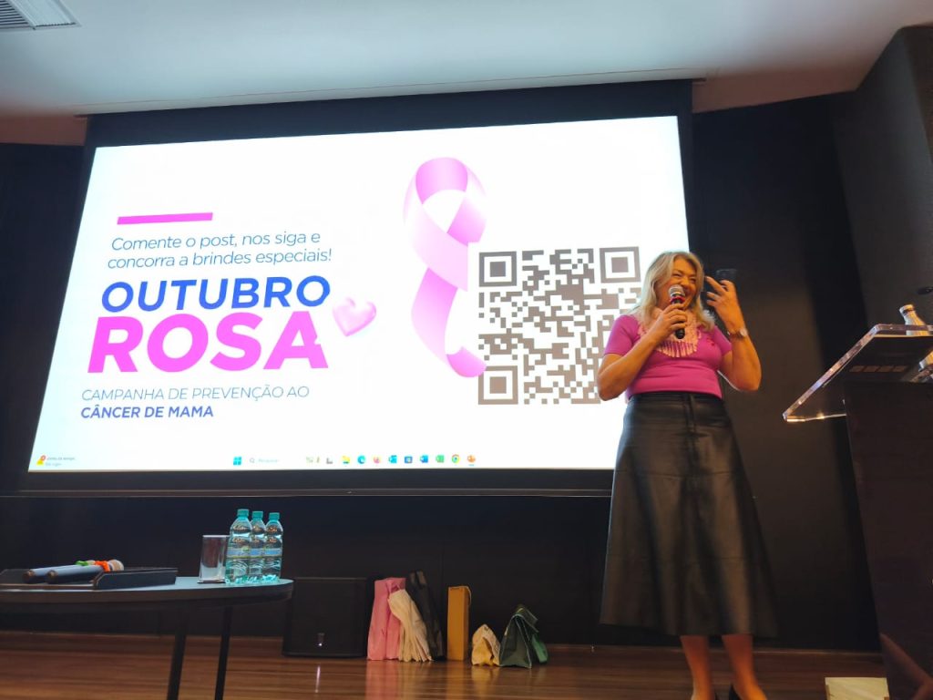A palestra foi conduzida pela enfermeira do trabalho do Sesi Ana Carolina Tavares, especialista em saúde da mulher, atenção primária e saúde ocupacional. Durante sua apresentação Tavares reforçou a importância da prevenção, do autoconhecimento corporal e do diagnóstico precoce.
