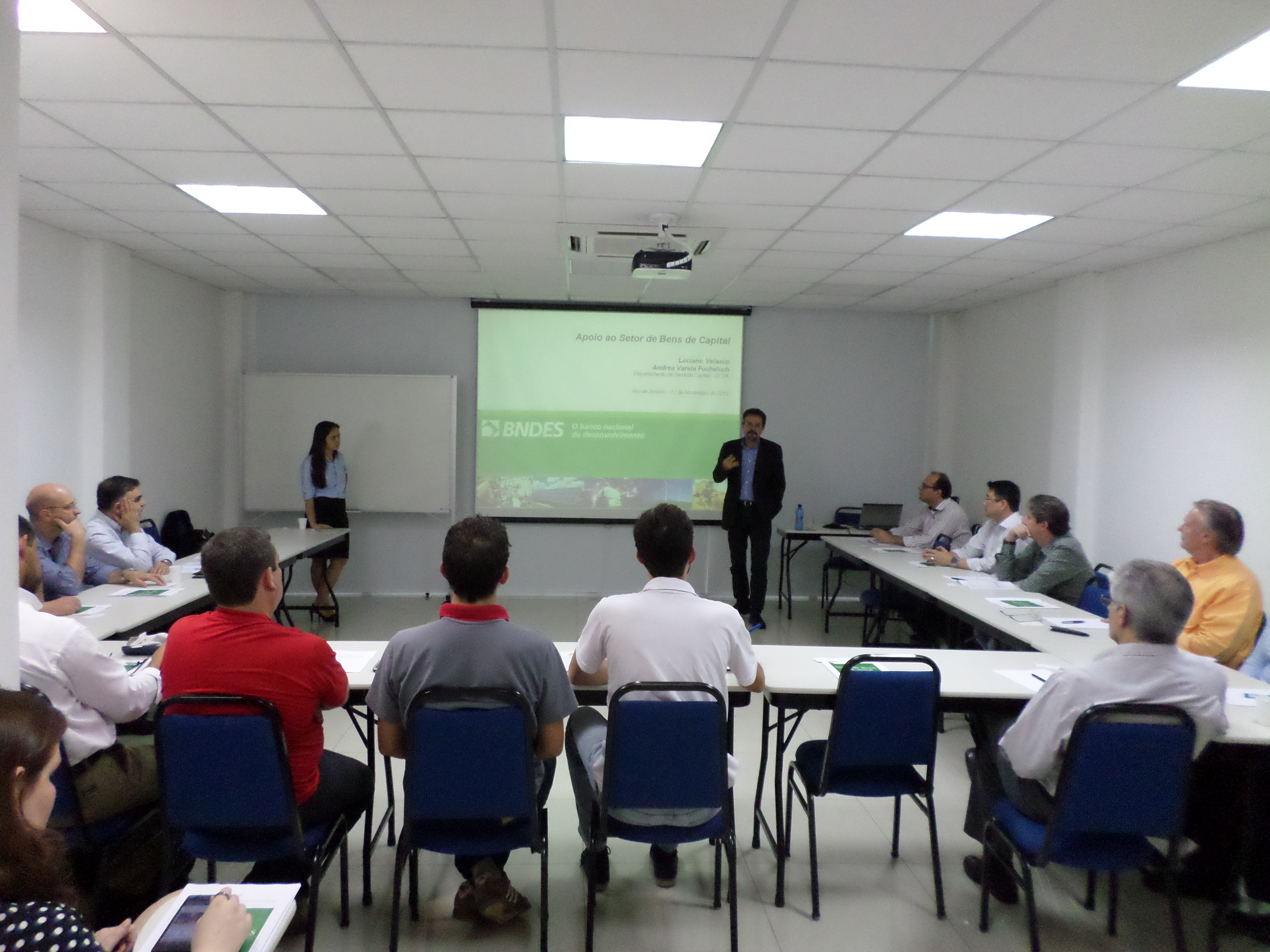 O SINDIMETAL/PR, em parceria com Federação das Indústrias do Estado do Paraná (FIEP), promoveu ontem (17-11), na sede do SINDIMETAL/PR, um encontro entre empresários do setor metalmecânico com representantes do BNDES. O objetivo da reunião foi apresentar o programa BNDES ProBK de Apoio ao Desenvolvimento do Setor de Bens de Capital e linhas de financiamento disponíveis para a aquisição de máquinas, investimentos, projetos de inovação tecnológica e capital de giro.
