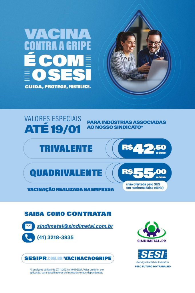 O SINDIMETAL/PR divulga, nesta oportunidade, que o SESI PR está lançando a Pré-Campanha da Vacina contra a Gripe 2024.