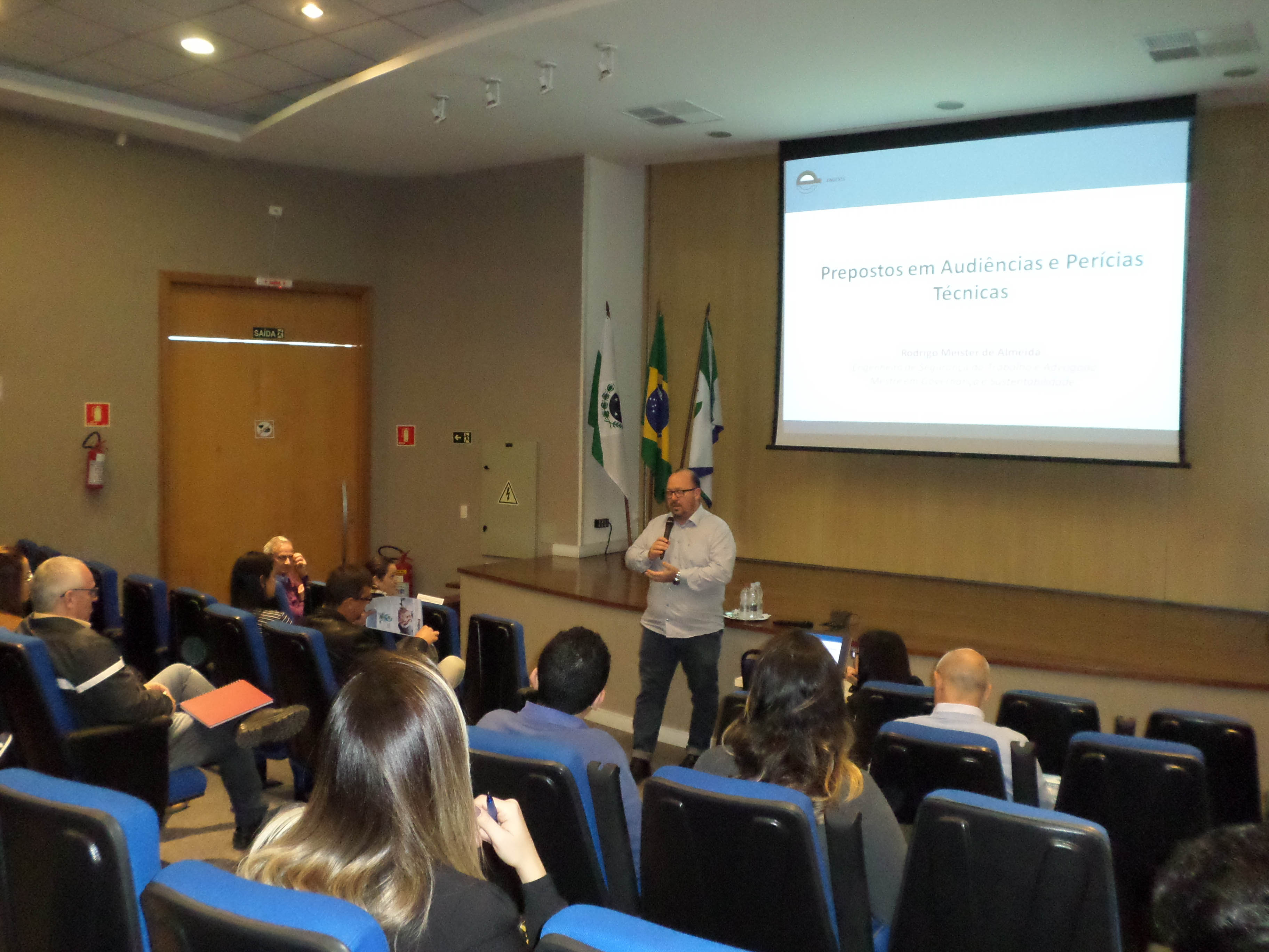 Rodrigo Meister de Almeida trouxe assuntos como: a atuação e o papel do preposto em audiências, a postura que deve ser adotada pelo profissional, a dinâmica da audiência, questões que podem ser formuladas numa perícia, entre outros.