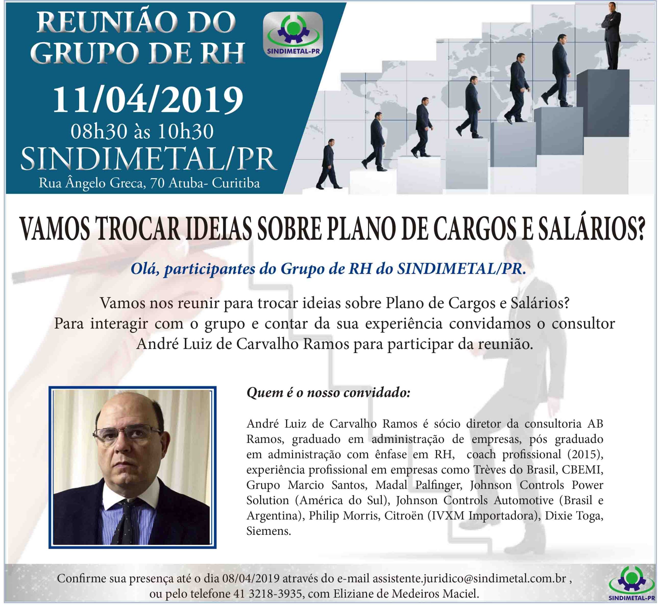 REUNIÃO GRUPO RH SINDIMETAL/PR – VAMOS TROCAR IDEIAS SOBRE PLANO DE CARGOS E SALÁRIOS?