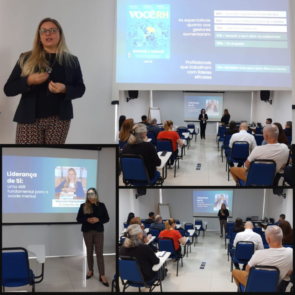 Durante a sua apresentação Marcele comentou sobre o programa “Liderança de Si” cuja proposta é auxiliar os líderes e, principalmente os profissionais de RH’s a manterem uma liderança mais humanizada nas empresas e, sobretudo, a assegurar o autocuidado nas questões associadas à saúde mental. “Precisamos cuidar principalmente de quem cuida do trabalhador no ambiente de trabalho”, reforça Marcele.