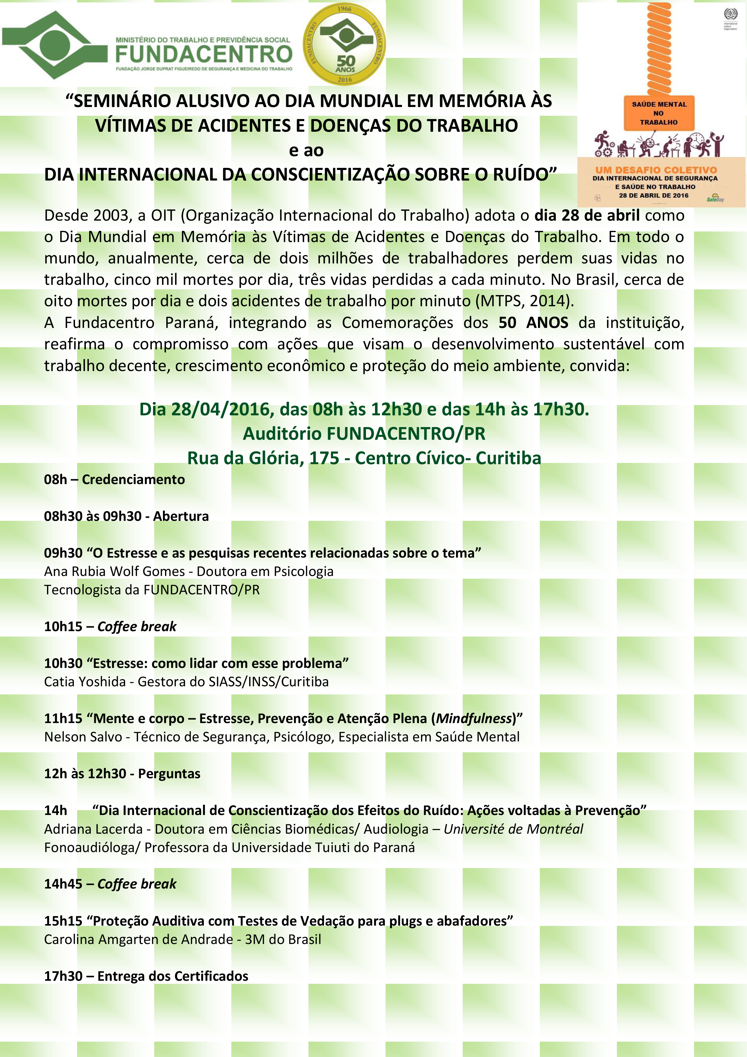 A Fundacentro Paraná, integrando as Comemorações dos 50 ANOS da instituição, reafirma o compromisso com ações que visam o desenvolvimento sustentável com trabalho decente, crescimento econômico e proteção do meio ambiente, convida: