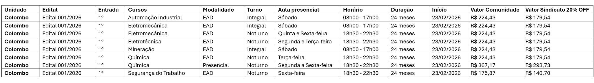 • Eletromecânica (EAD): Opções Integral (Sábado) ou Noturno (Qui e Sex) — Apenas R$ 179,54 para associados!