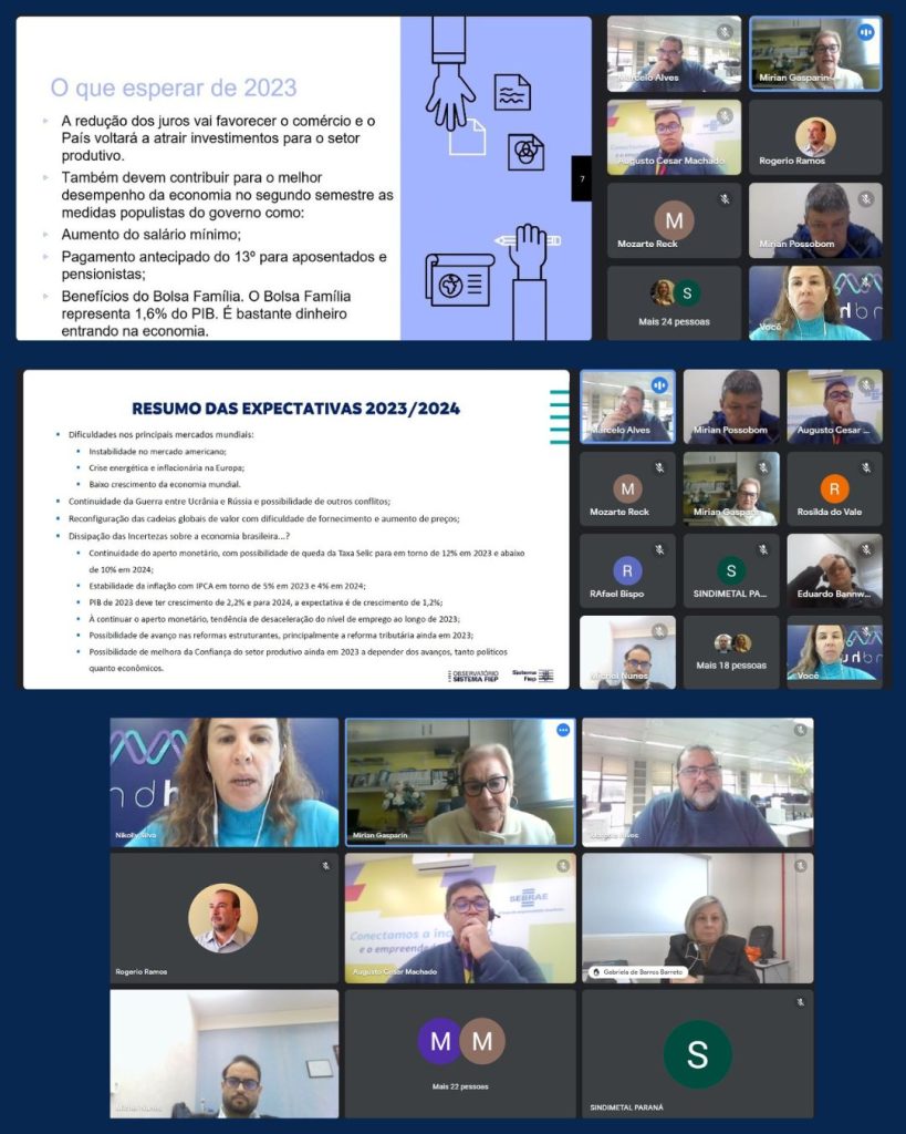 O SINDIMETAL/PR e o SEBRAE/PR (Regional Leste) promoveram no último dia 04-07-2023 a palestra online sobre o tema “CENÁRIO ECONÔMICO BRASILEIRO: DESAFIOS E SOLUÇÕES PARA AS INDÚSTRIAS”. O evento, que faz parte da série de atividades do Grupo de Governança Metalmecânica, contou com a participação especial da renomada jornalista da Band News, Mirian Gasparin e do coordenador econômico da FIEP, Marcelo Alves.