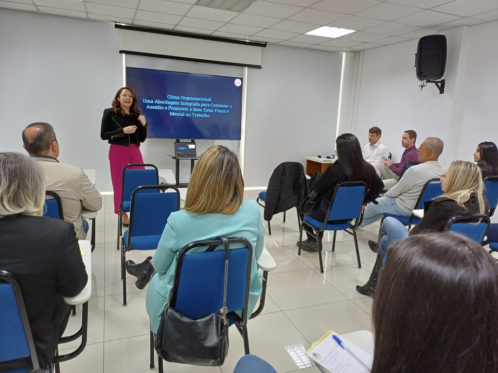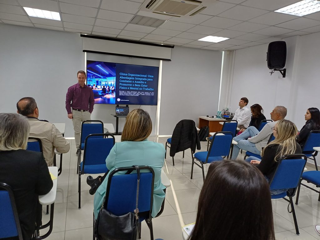 O evento contou com a participação dos especialistas Gerson Túlio Menezes, Kátia Ferreira e Eduardo Weigang de Campos, representantes da SEE Consultorias, que conduziram apresentação importante sobre o conceito de clima organizacional e a legislação pertinente ao assédio no ambiente de trabalho. O objetivo foi debater estratégias para melhorar o ambiente corporativo, prevenindo ilegalidades e práticas inadequadas, além de promover a saúde e o bem-estar dos colaboradores.