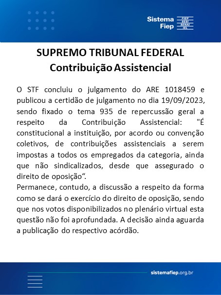 O SINDIMETAL/PR divulga a notícia publicada pelo Sistema FIEP que trata sobre Contribuição Assistencial.