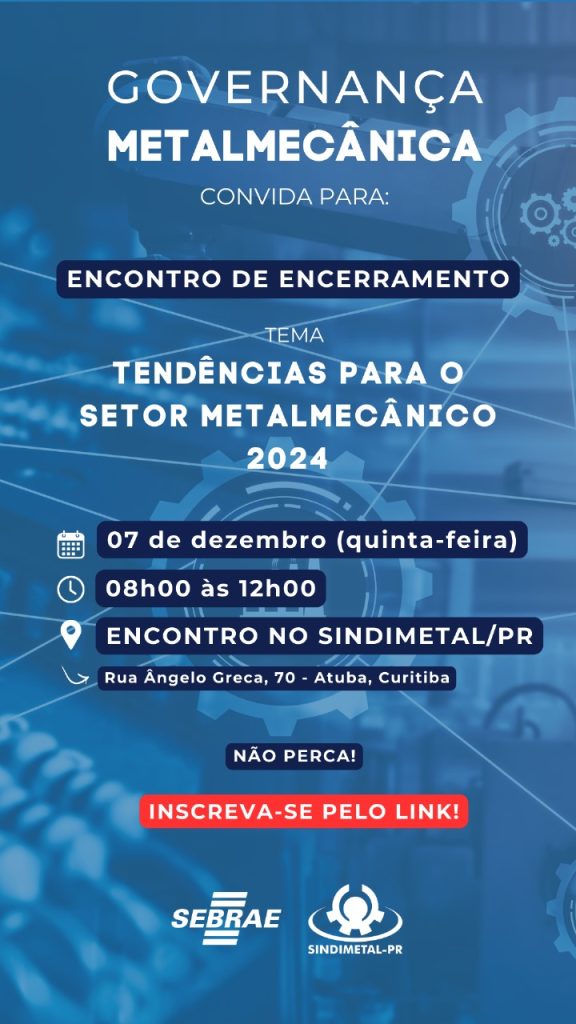 A Governança Metalmecânica é uma iniciativa do SINDIMETAL/PR, em parceria com o SEBRAE/PR – Regional Leste.