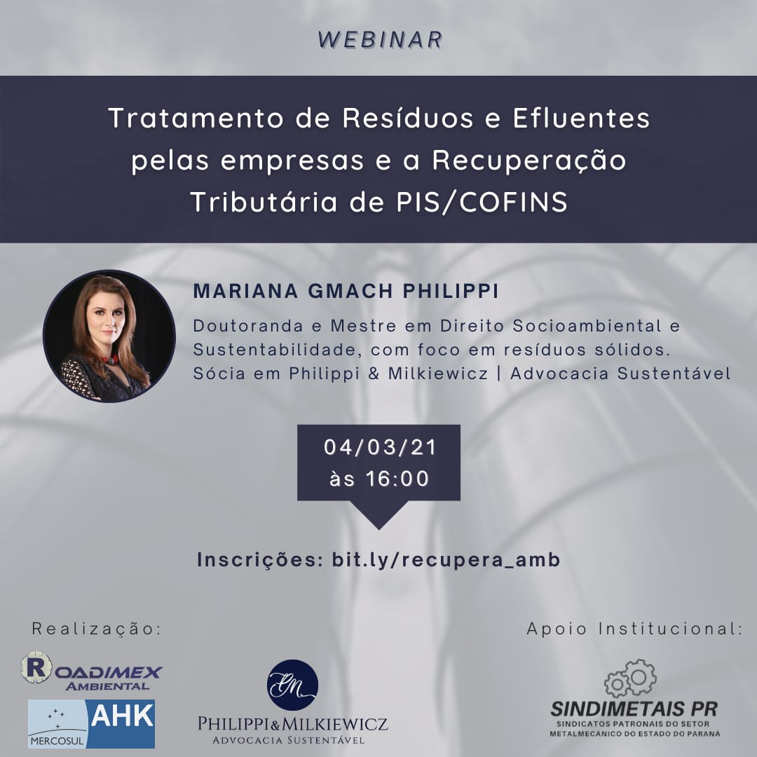 WEBINAR: TRATAMENTO DE RESÍDUOS E EFLUENTES PELAS EMPRESAS E A RECUPERAÇÃO TRIBUTÁRIA DE PIS/ COFINS